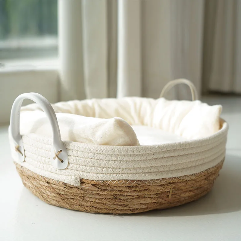 Ротанговое кошачье гнездо, подвесная корзина, летнее плетеное гнездо из ротанга ручной работы, в стиле фермерского дома, простая кошачья гнездо, коврик для кошачьего хвоста, круглая Конура