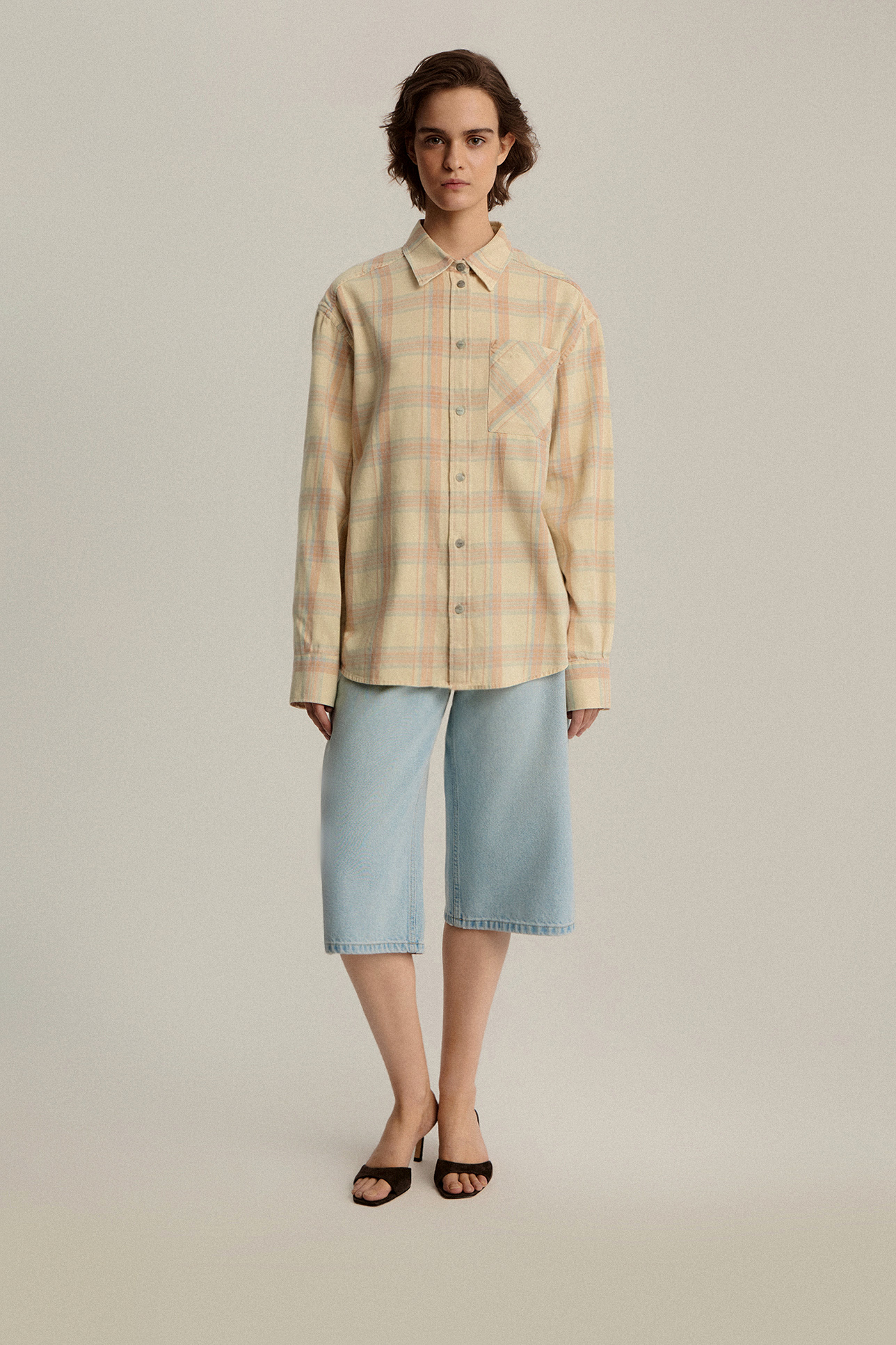 Плотность материала позволяет носить рубашку как самостоятельный верх, так и в качестве второго слоя поверх футболок и топов.
