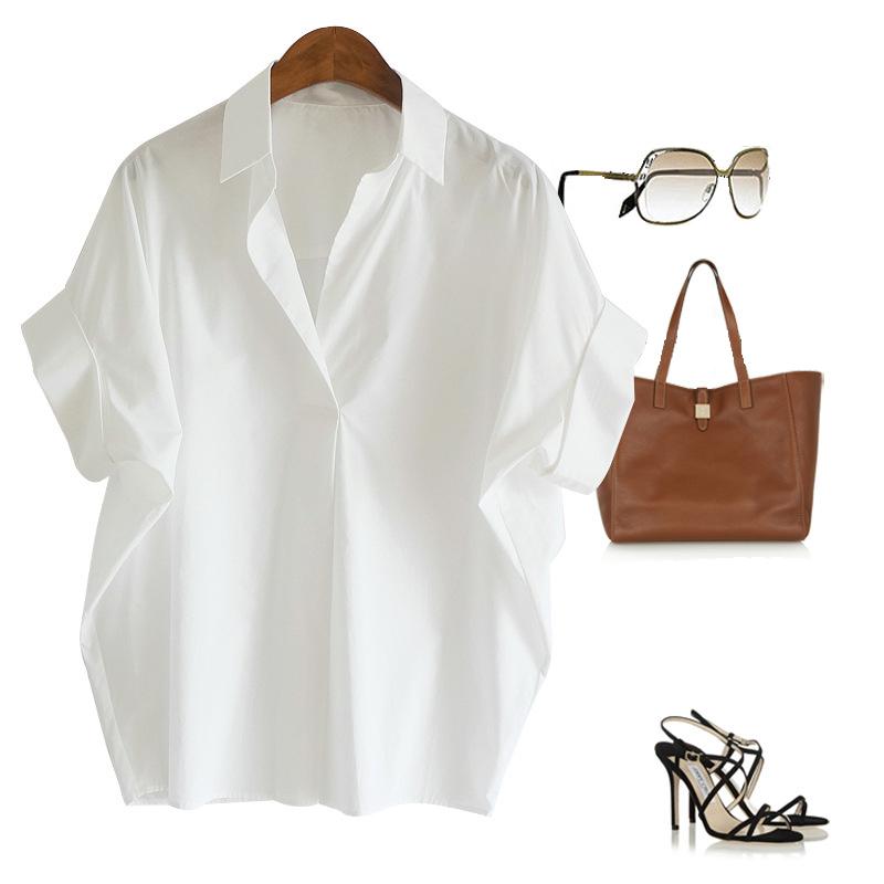 Рубашка с короткими рукавами в стиле ретро, женская летняя стильная универсальная белая рубашка, свободный воротник-летучая мышь XL белый