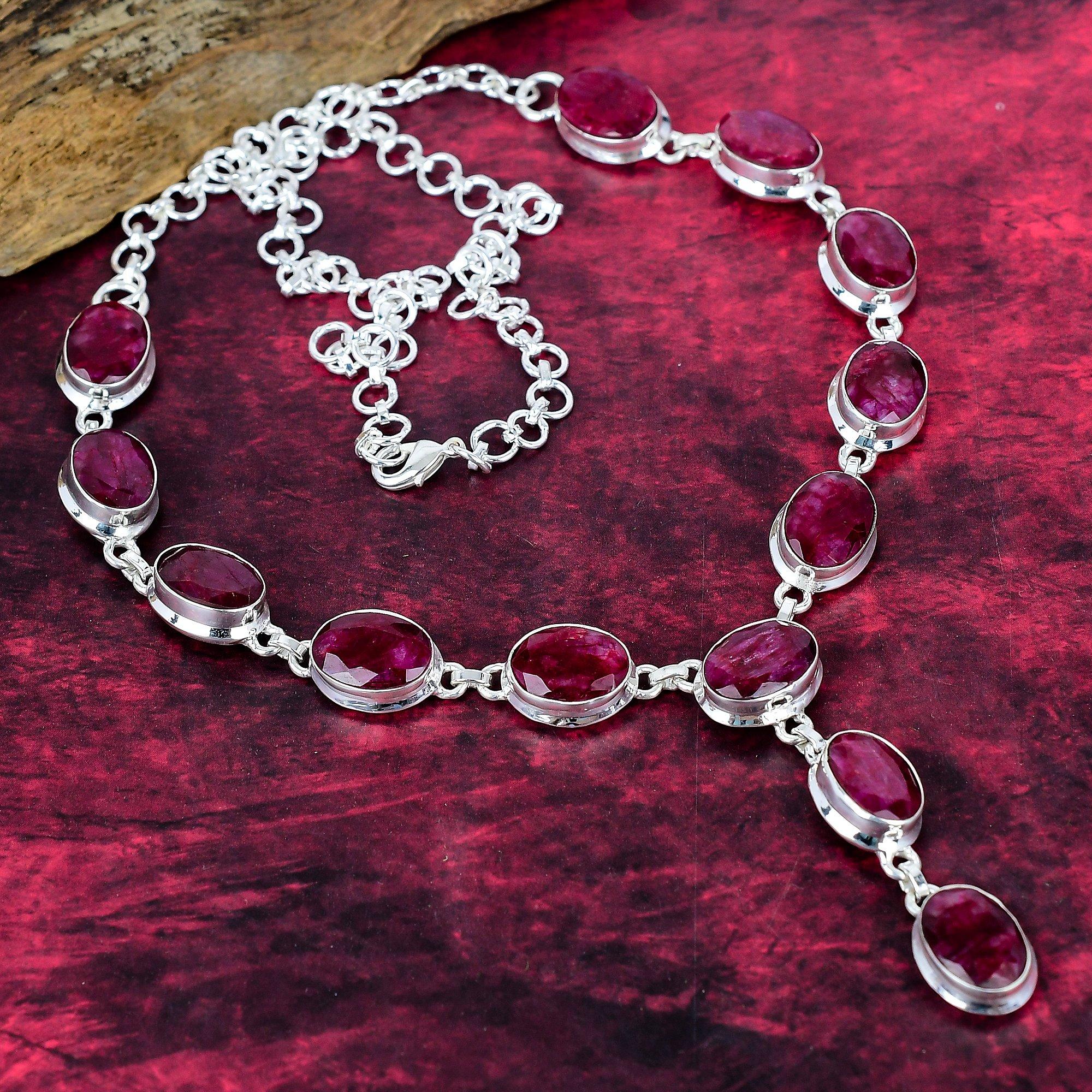 Рубиновое ожерелье Ювелирные изделия ручной работы, Ожерелье из стерлингового серебра 925 пробы, Дизайнерские украшения с драгоценными камнями, Ожерелье с регулируемой цепочкой, Подарок для мамы красный