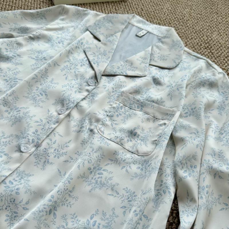 Руйюнь 25-я годовщина Ледяной шелк Рубашка с длинным рукавом Воротник Пижама - Корейский и Французский стиль Extra Large