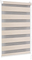 Рулонная штора «День-ночь» состоит из ткани, с чередующимися полосами из прозрачного и непрозрачного материала, расположенной в два слоя. Уникальность двойной рулонной шторы заключается в её универсальности. Она имеет и привлекательный внешний вид, и легка в управлении, даёт возможность контролировать интенсивность солнечного света, непосредственно на самом изделии.