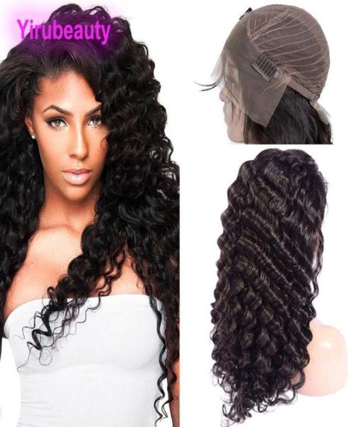 brazilian virgin hair lace front wigs deep wave pre plucked natural hairline 1030inch human hair baby hairs remy curly6767657, Black;brown