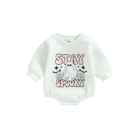 wsevypo Halloween Baby Girls Romper Long Sleeve Letters Ghost Print Bodysuit