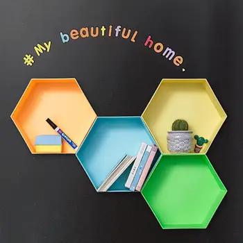 Magnetic Wall Hanging Hexagon Storage Rack Box Floating Shelf Home Bedroom Kitchen Living Room Decor Organizer