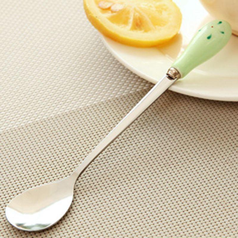 Ручка Керамическая Цветочная Ложка для Перемешивания Посуда Посуда из Нержавеющей Стали Молоко зелёный