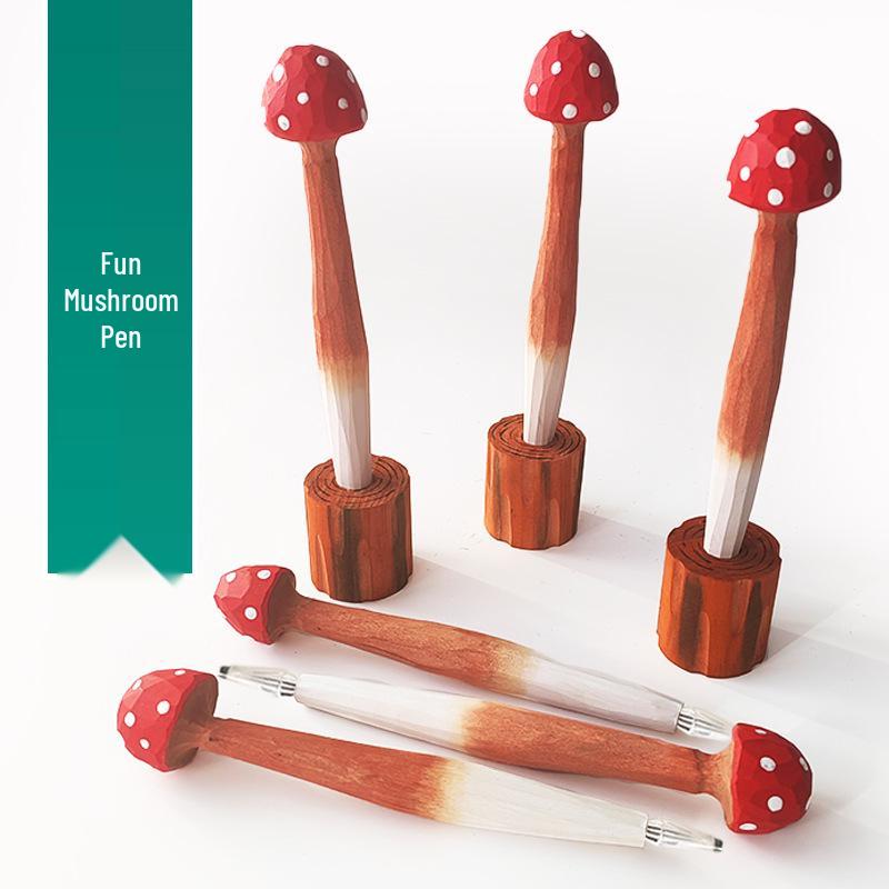 Ручка гелевая шариковая деревянная ручной работы в виде красного гриба - Канцелярский подарок для студента