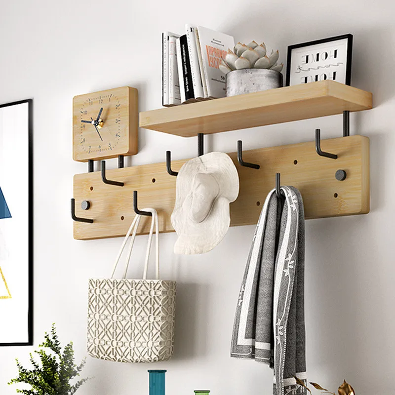 Настенный держатель винтажные Крючки вешалка бамбуковая настенная стойка домашний декор часы пальто крючок лоток для хранения Органайзер ...