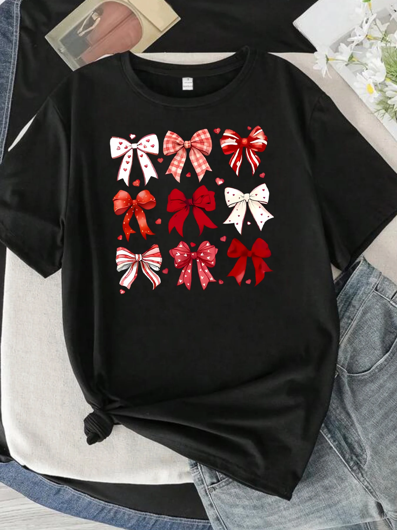 Женская летняя трендовая футболка с бантом и коротким рукавом, повседневная модная женская одежда