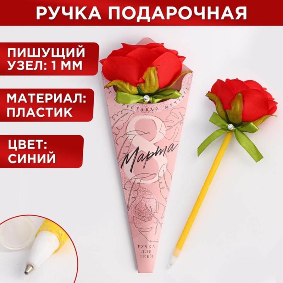 Ручка подарочная шариковая синяя 1,0мм 8 марта Роза пластик.корпус подложка ArtFox 5290054