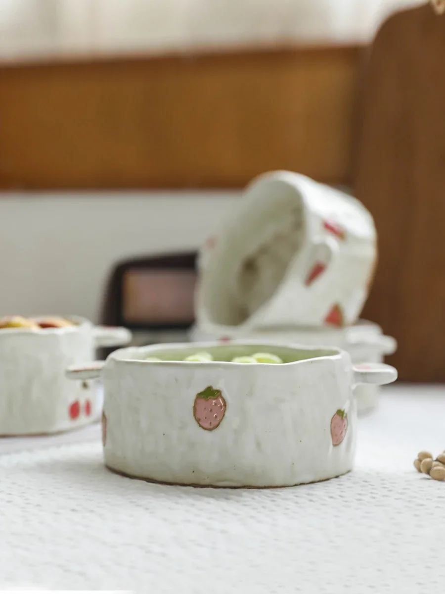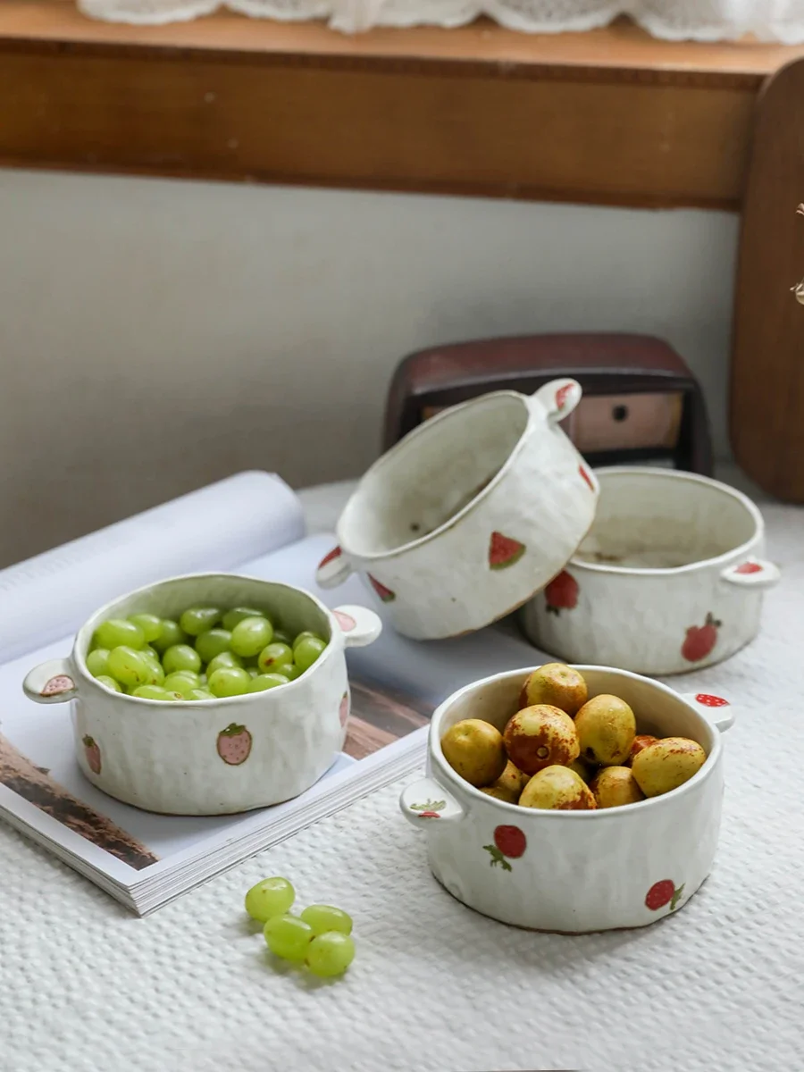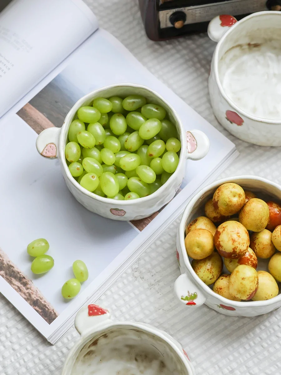 Ручная керамическая японская креативная чаша, большая банка для лапши, миска для риса с двойными ушками, милая Клубника, Вишня