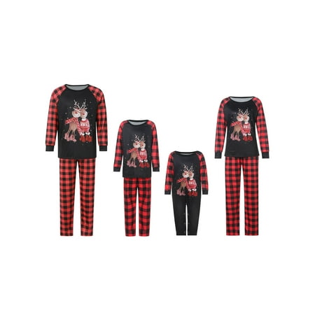 JYYYBF Christmas Pajamas for Family Deer Long Sleeve T-shirt+Plaid Print Trousers/Romper Xmas Nightwear Sets for Baby Kid Parents Black Red