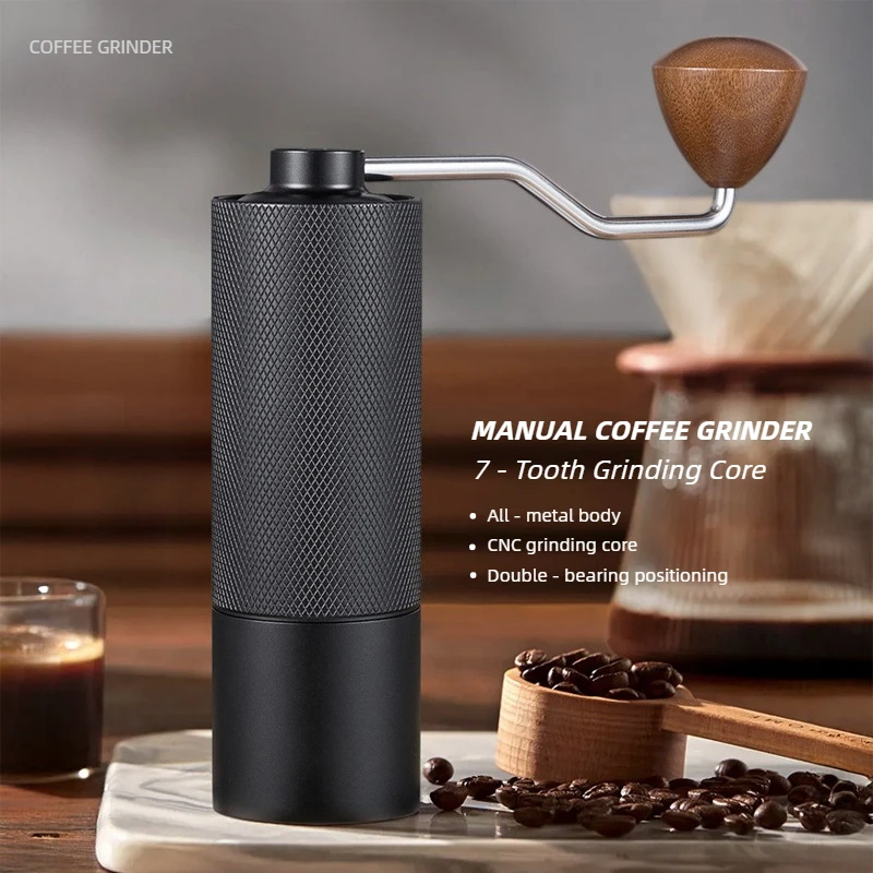 Ручная кофемолка из алюминиевого сплава, рукоятка с ЧПУ, нержавеющая сталь, 7-лезвийные заусенцы, регулируемая портативная мельница для эспрессо, френч-пресс