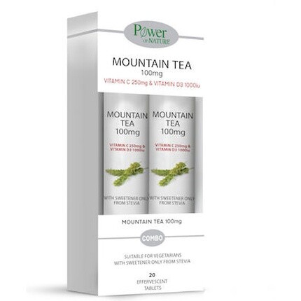 Power Of Nature Mountain Tea 100 мг Пищевая добавка для выносливости с экстрактом горного чая 2x20 шипучих таблеток Power Health