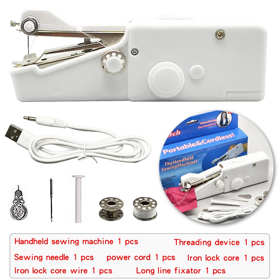 Ручная портативная мини-электрическая швейная машина, подходящая для DIY-процессов шитья, таких как одежда, подушки, ткани и т. д. белый