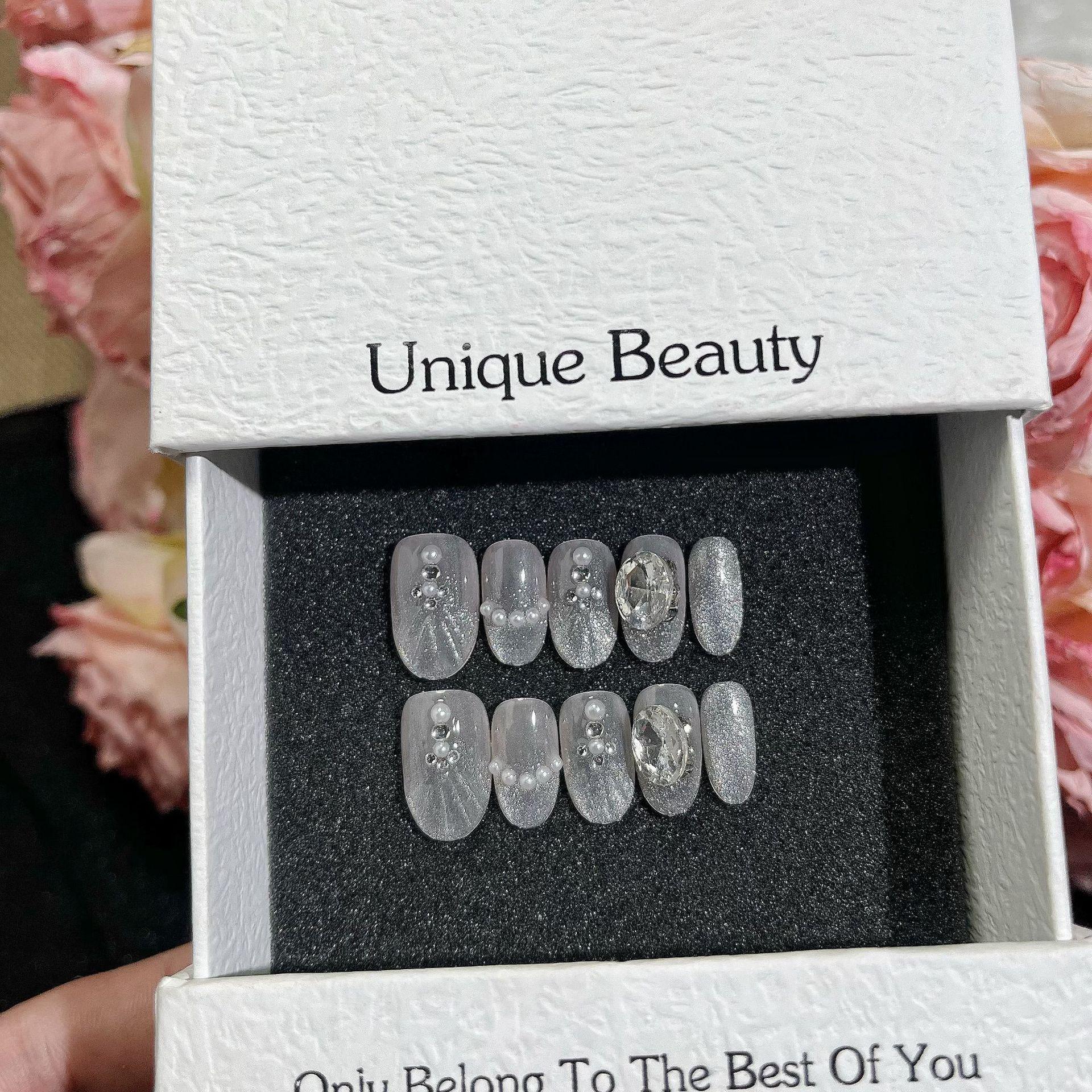 Ручная работа Серебряный Кошачий глаз Черно-белые Патчи для дизайна ногтей - Съемные, Носимые, Короткие ногти Small