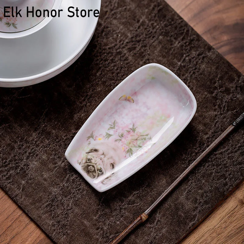 Ручная роспись, Персиковый Порошок, керамическая чайная ложка ручной работы, для оценки чая, творческая лопатка для чая и мопса, инструменты для кофе и чая