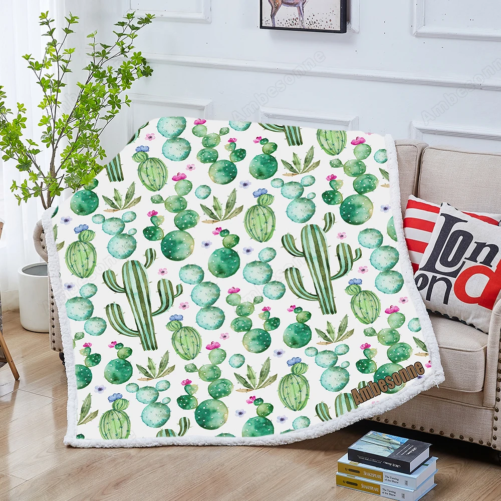 Ручная роспись акварель кактус растения плед одеяло плюшевое покрывало пастельные цвета одеяло забавное одеяло для кровати