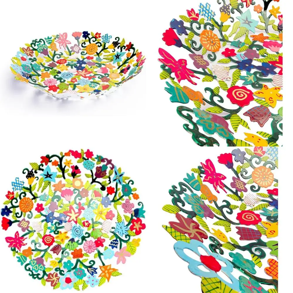 Ручная роспись декоративная металлическая ваза для фруктов - яркая подвесная центральная часть для домашнего декора и подарков - вдохновленная Иудаикой