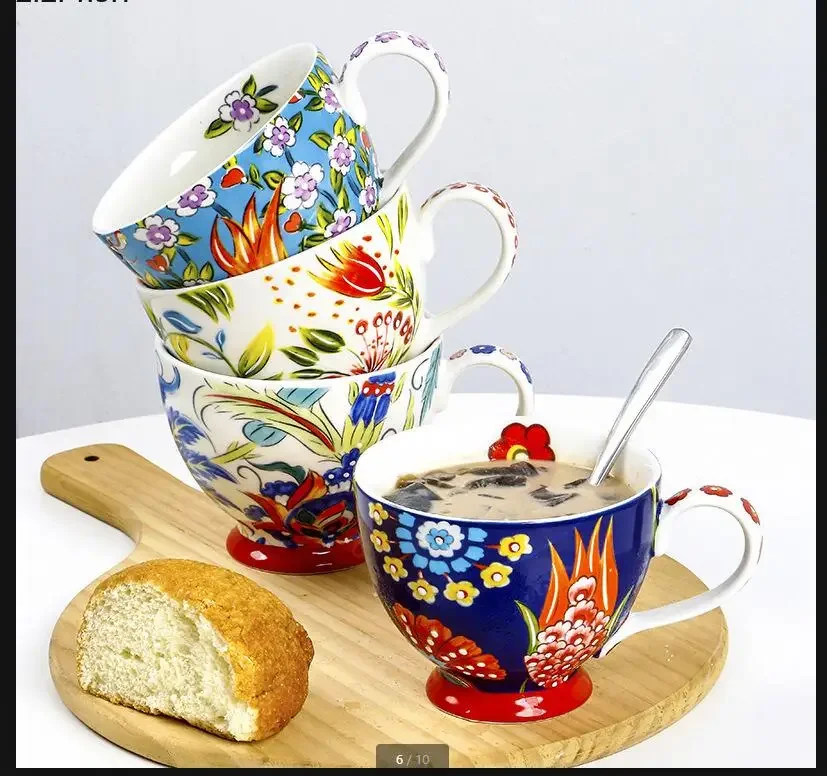 Ручная роспись керамическая чашка для завтрака Большая емкость Кофейные чашки Чашка для воды Чашки для чая с молоком Чашки для сока Кружки для молока Чайная чашка Кофейные кружки