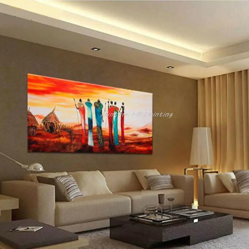 Ручная роспись, красочные деревенские племена, пейзаж, масляная живопись на холсте, современная абстрактная настенная живопись, картины дл...