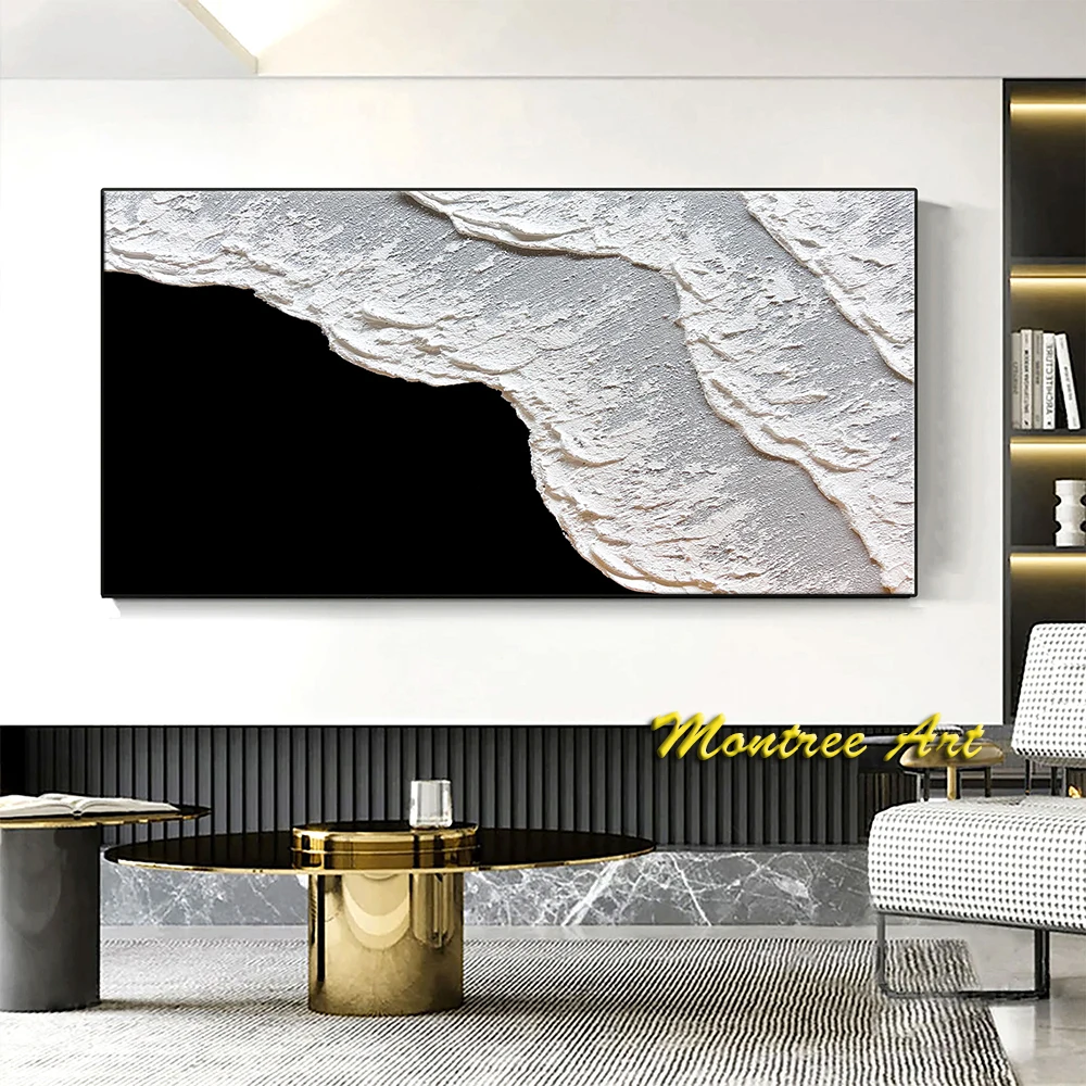 Ручная роспись маслом, оригинальная черно-белая океанская волна, искусство на белой стене, черная абстрактная живопись, украшение для гостиной