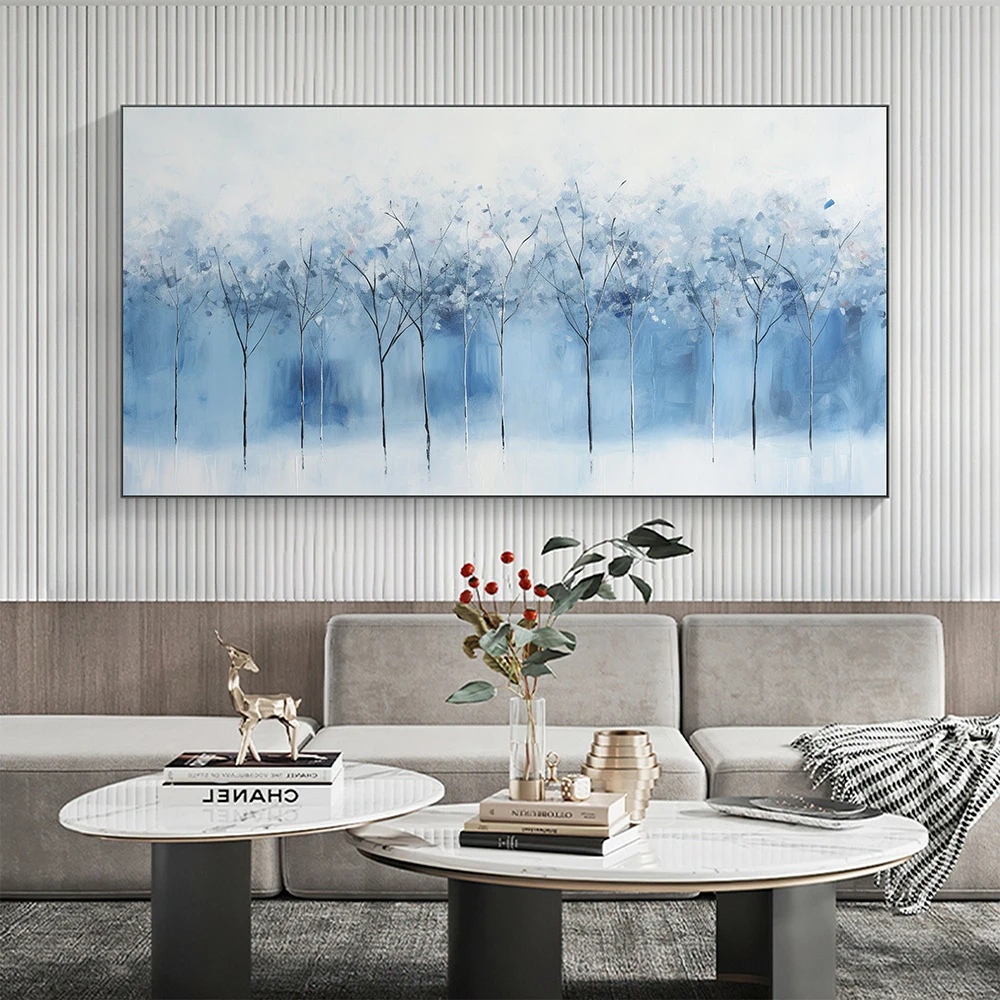 Ручная роспись масляными красками абстрактный лес пейзаж масляная живопись большая настенная живопись оригинальная синяя фотокартина на заказ