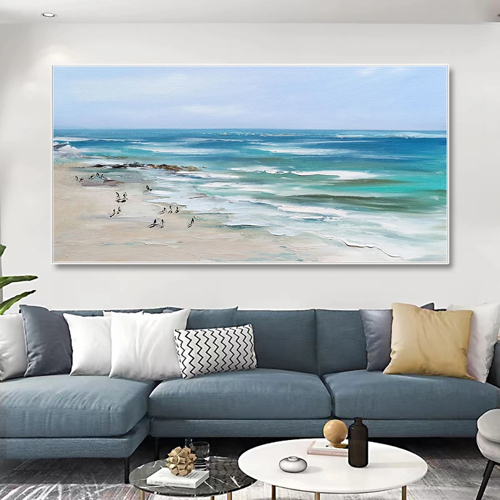 Ручная роспись, морской пейзаж, картина маслом, оригинальное изображение на холсте, большой размер, ручная работа, Пляжная фотография, совре...