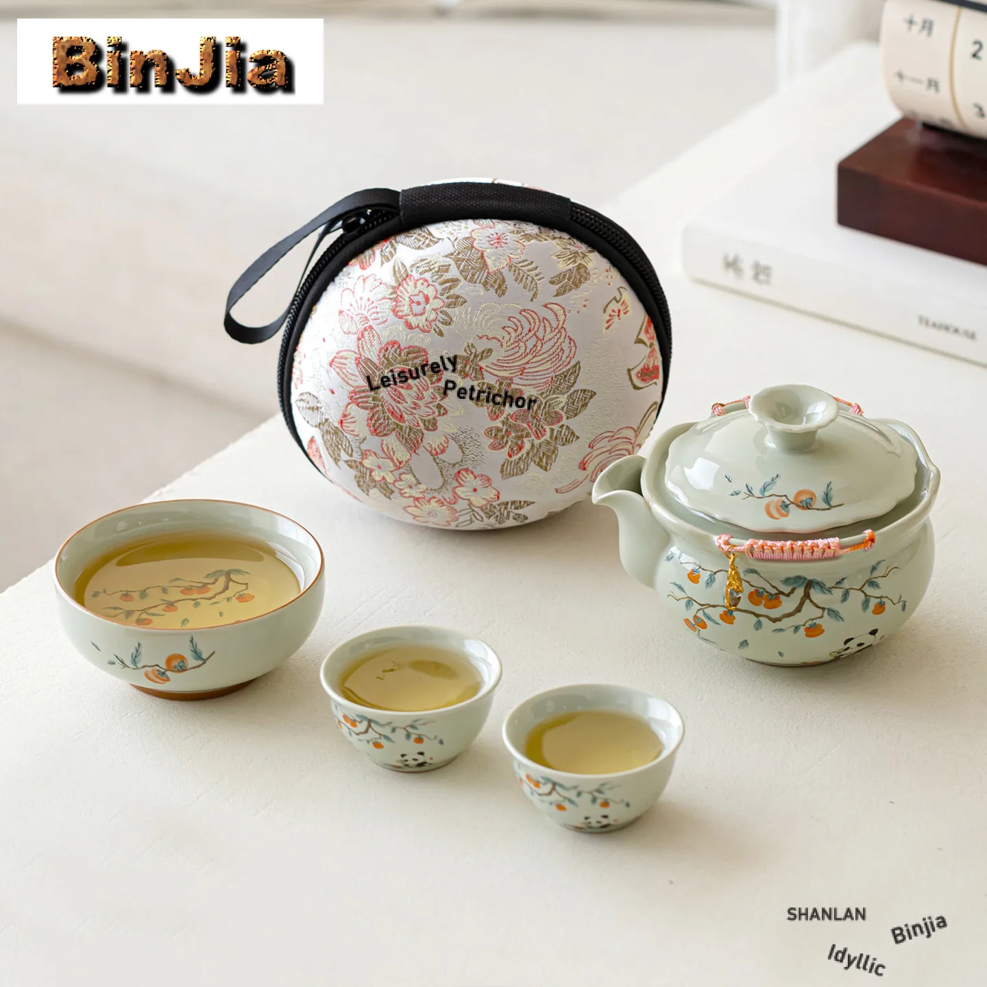 Ручная роспись панда хурма дорожный чайный сервиз набор ретро 1 горшок 3 чашки чайник органайзер портативный уличный большая сумка украшение
