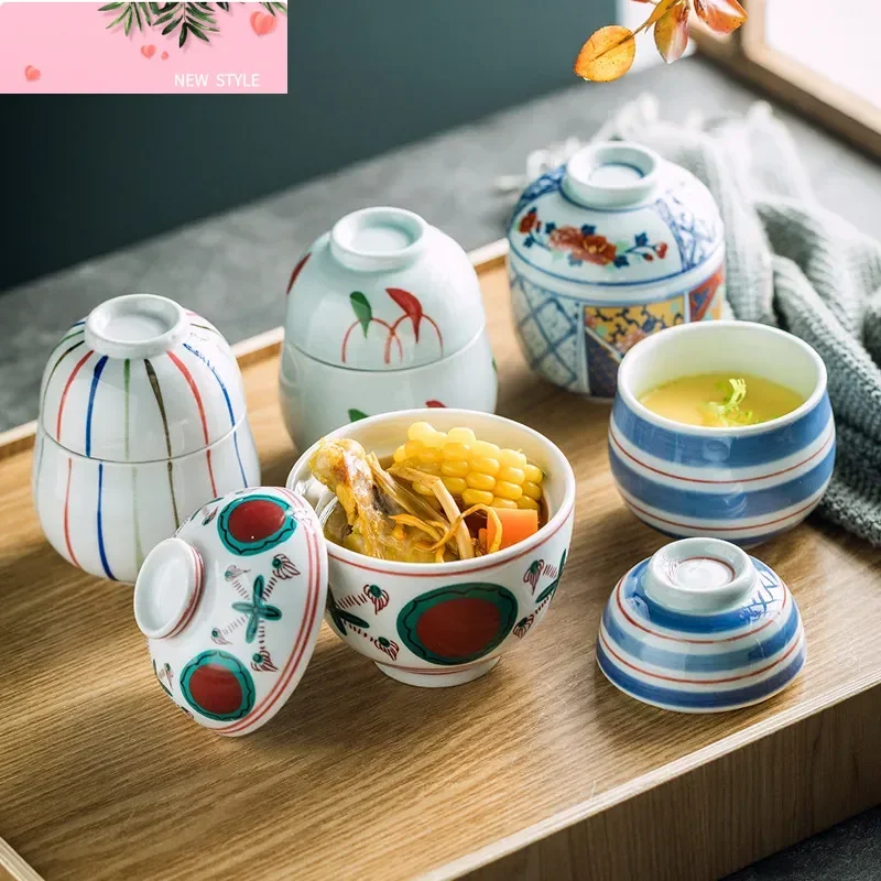 Ручная роспись, японская керамика с крышкой, миска, птичье гнездо, десертная кастрюля для тушения, коммерческая маленькая кастрюля для тушения, суповая кастрюля для отеля