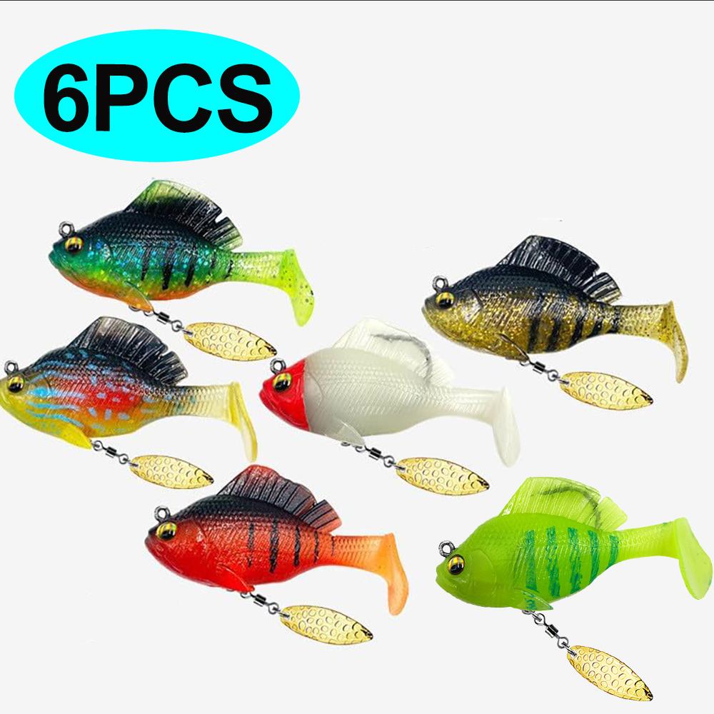 Рыбалка Мягкая приманка Свинцовая огрузка Дальний заброс Устойчивые к поклевке Крючки Вертлюжок Лепесток Т-образный хвост с 3D цветным рыбьим глазом Крючки с кровавой канавкой 6PCS