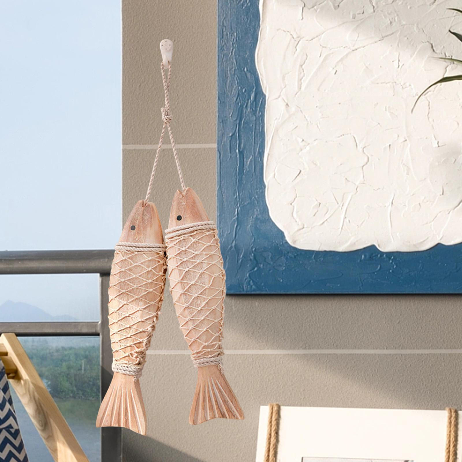 Рыба Подвеска Настенная Скульптура Деревенская Современная Средиземноморская Скандинавская Деревянная Подвеска 31.5x7.5cm