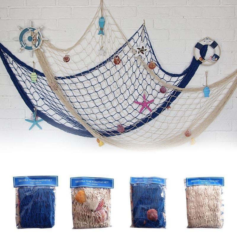 Рыбная сеть, подвесные украшения, Средиземноморский 3D морской океан, тема, домашняя рыболовная сеть, настенный декор 100/200cm бежевый