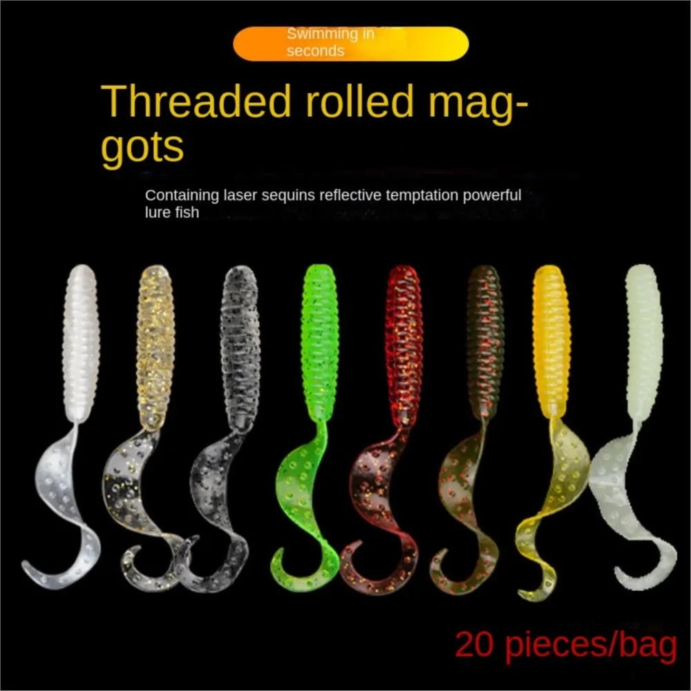 Рыболовные приманки с винтом, Мягкая приманка с крутящимся хвостом для дороги, перевернутая свинцовая рыболовная группа, мягкий червь, черн...
