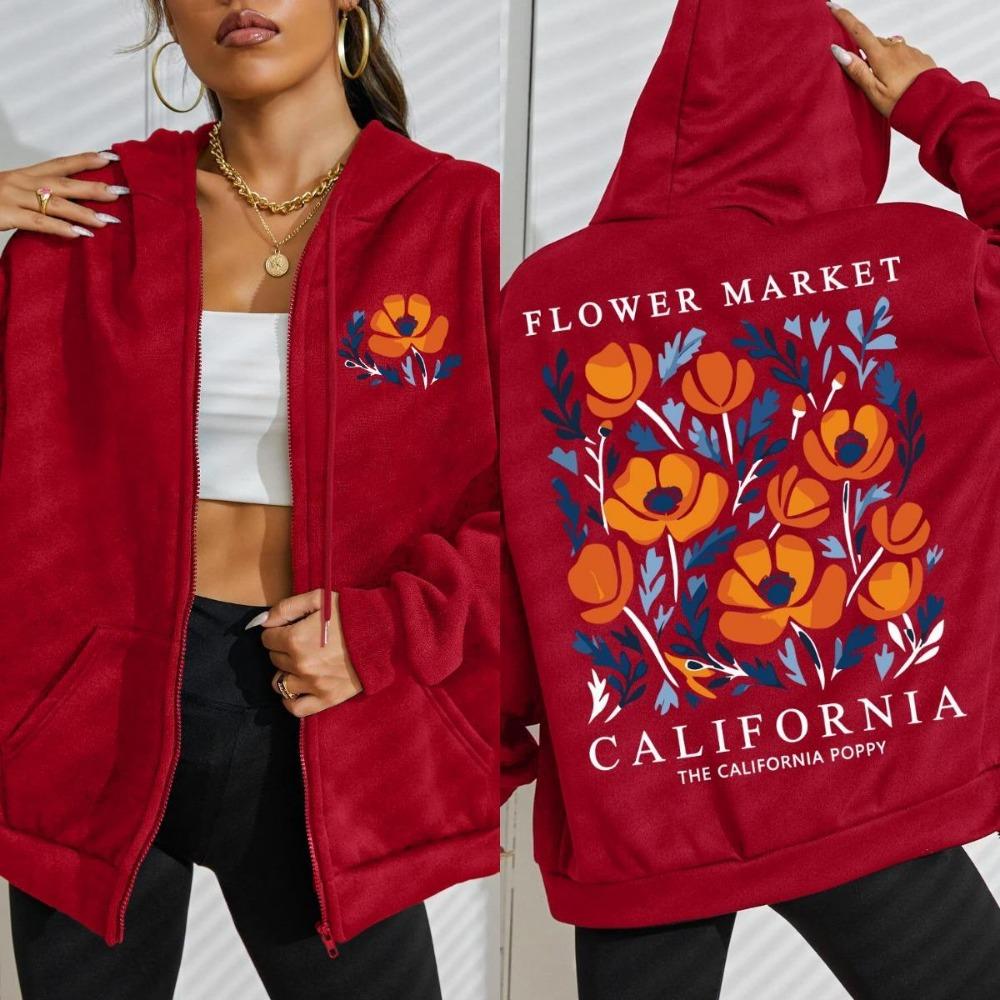 Рынок Желтых Цветов Калифорния Принты Женская Толстовка на Молнии Модная Свободная Толстовка Мягкая Повседневная Спортивная Одежда Осенняя Одежда 3XL