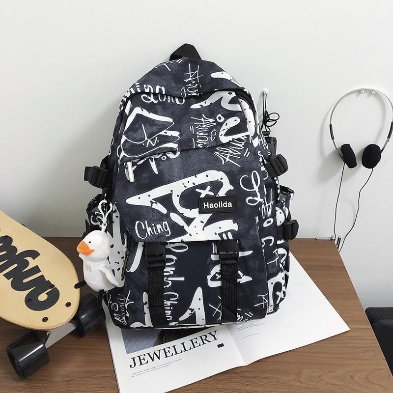 Рюкзак Женский рюкзак с граффити для ученицы средней школы Мужской премиальный многослойный школьный рюкзак большой вместимости single package чёрный