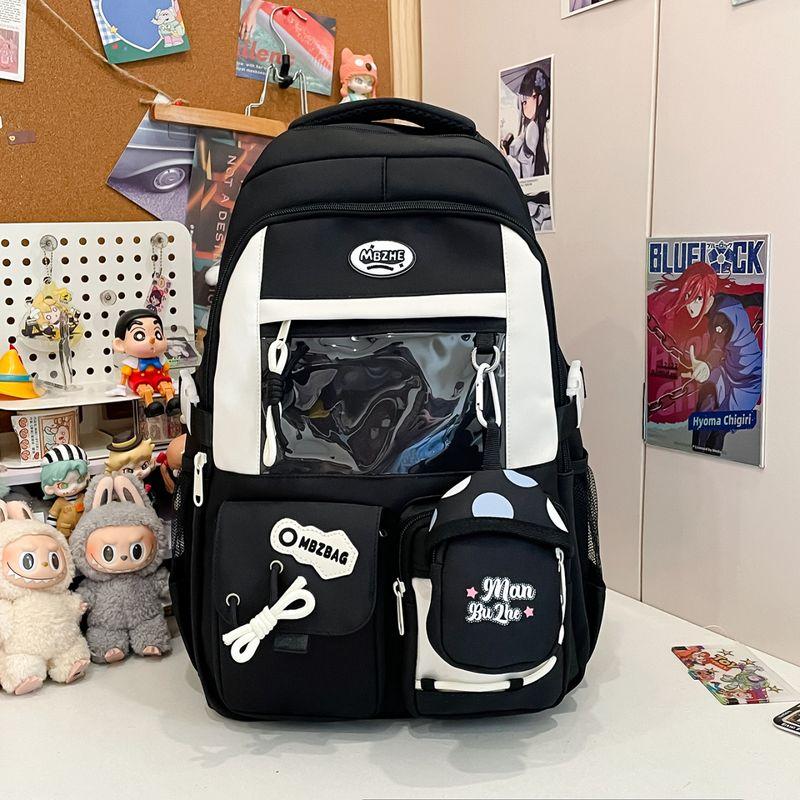 Рюкзак для девочек-подростков, легкий, для начальной школы, с 3 по 6 класс, для девочек, большой вместимости, с облегчением нагрузки, мультяшный рюкзак Black + mushroom coin purse