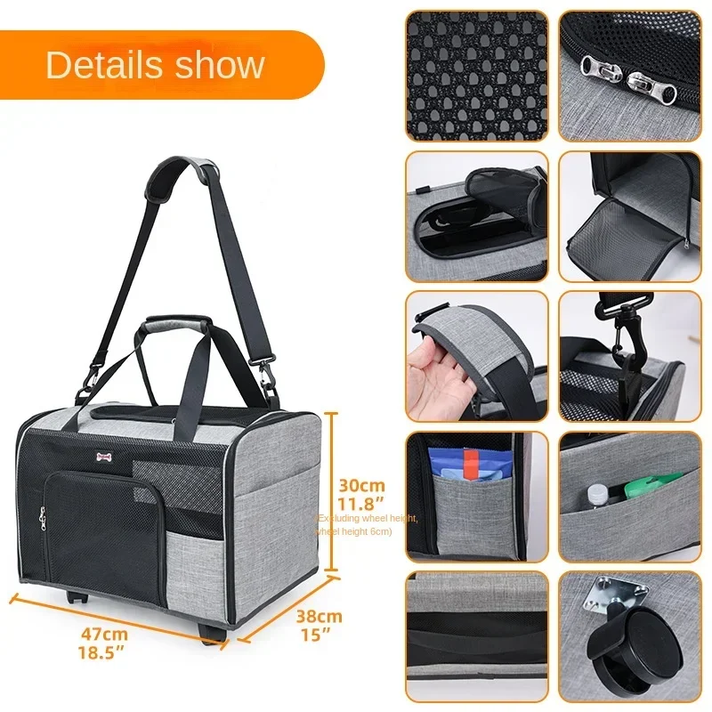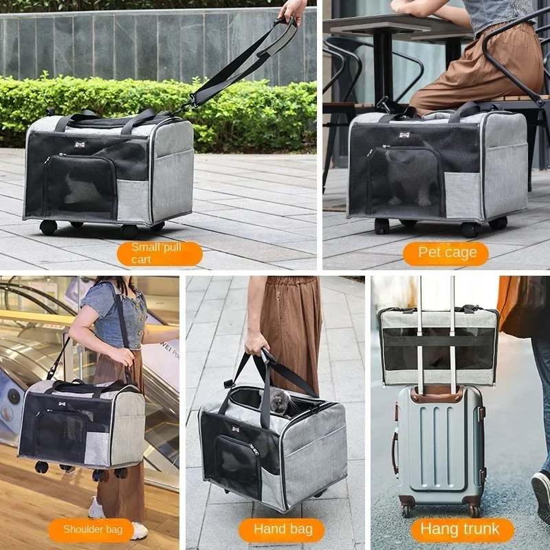 Рюкзак для домашних животных с колесами, прогулочная сумка на плечо, дышащая переноска-переноска, портативная, большая вместимость для собак и кошек