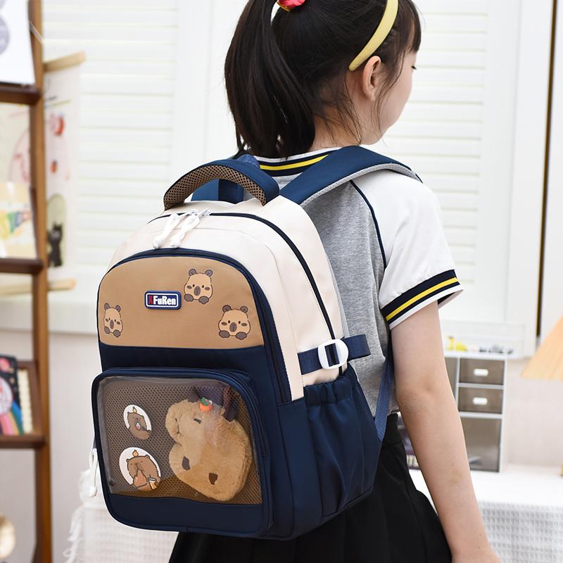 Рюкзак для начальной школы Lackup с защитой позвоночника, третий класс, кампусный рюкзак, мультяшный рюкзак большой вместимости темно-синий