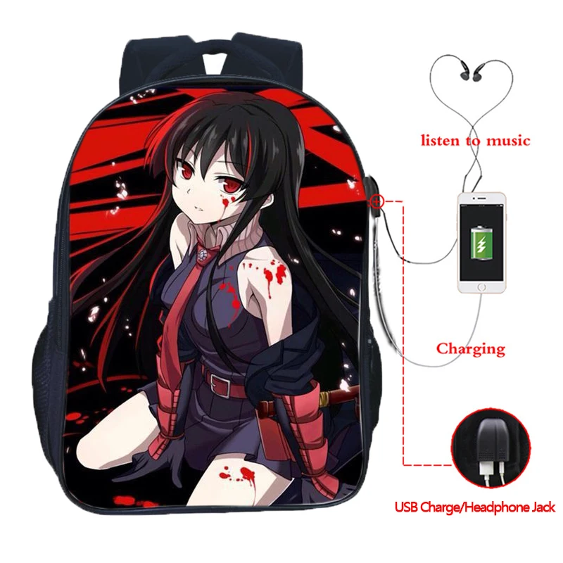 Рюкзак для подростков Akame Ga Kill! Рюкзак с Usb-зарядкой для мальчиков, детские школьные ранцы для учеников, модный дорожный ранец на плечо для по...