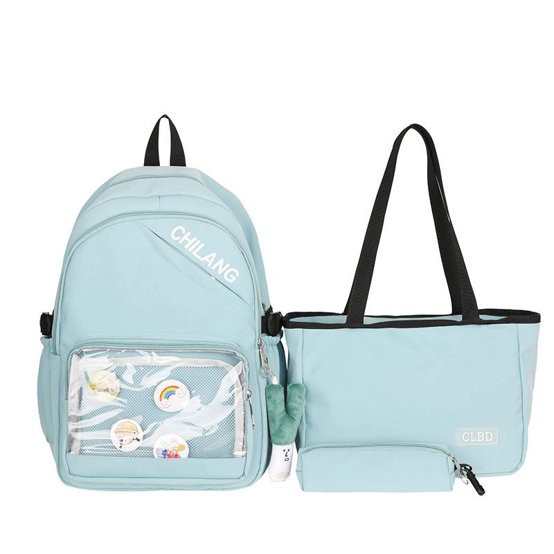 Рюкзак из трех предметов, школьный рюкзак для девочек, рюкзак большой емкости с сумкой для обеда, сумка для ручек синий