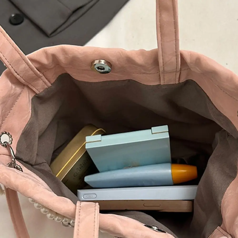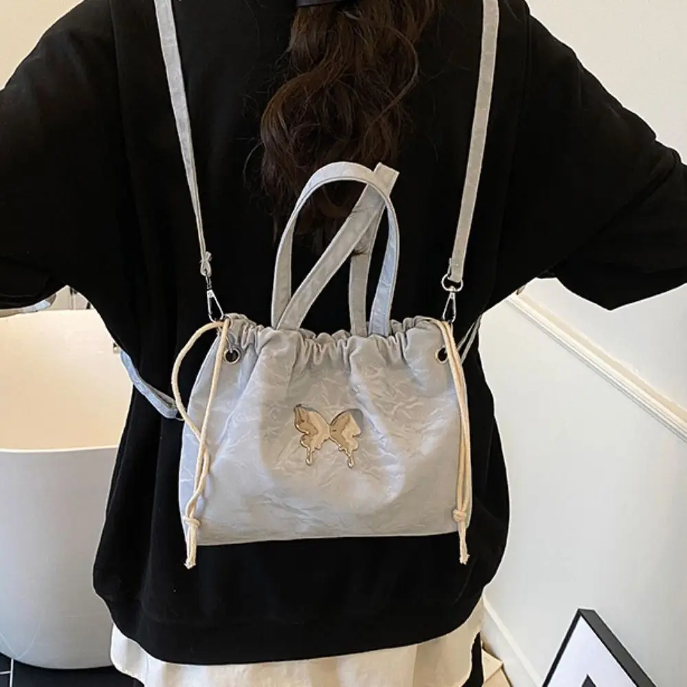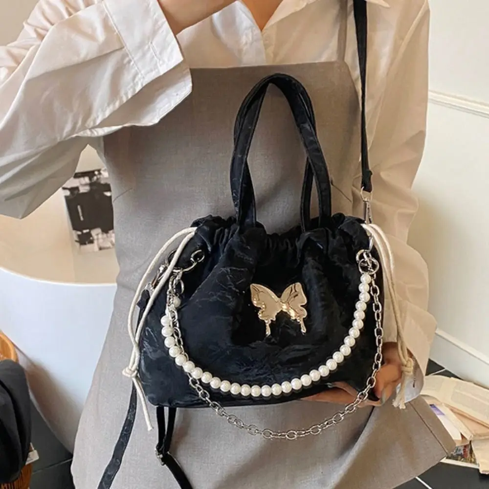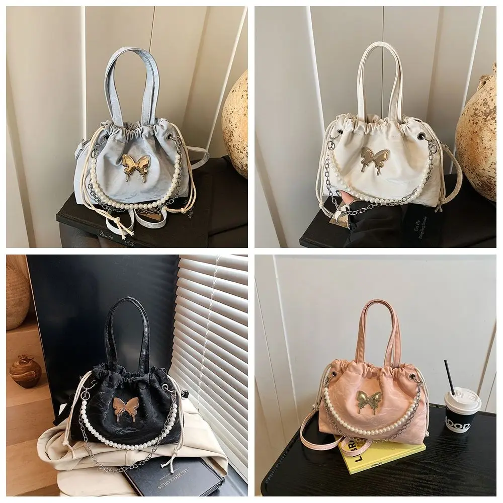 Рюкзак с магнитной пряжкой, серебряная бабочка, металлическая цепочка, жемчужная цепочка, сумка на плечо на шнурке, однотонная, большой вместительности