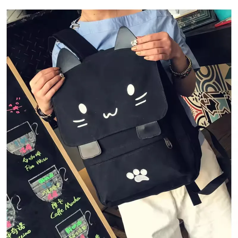 Рюкзак с милым котом в стиле Харадзюку, черный школьный рюкзак с героями мультфильмов, большой вместительный холщовый рюкзак, повседневная дорожная сумка для мальчиков и девочек, студенческий подарок