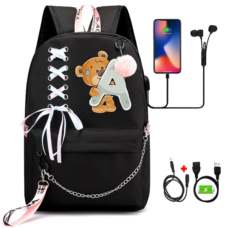 Рюкзак с принтом «Маленький медведь», 26 английских букв, детский рюкзак для школы для мальчиков и девочек, сумка для книг с героями мультфильмов, кавайная школьная сумка для школьников