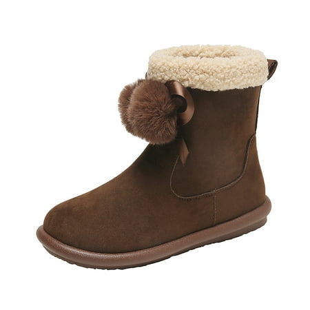 GNEIKDEING Ladies Solid Color Suede Bow Hair Ball Short Boots Warm Plush Flat Cotton Boots Gift on Clearance