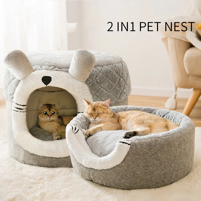 САМОНАГРЕВАЮЩАЯСЯ Складная пещера 2 в 1, домик для домашних животных, спальная кровать для кошек, котят и маленьких домашних животных с проти...