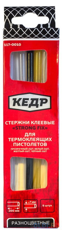 СТЕРЖНИ СМЕННЫЕ С КЛЕЕМ 7,2 ММ*20 СМ НАБОР 6 ШТ.(Б.-2, ПР.-2, Ж.-1, Ч.-1) (1/300) "КЕДР" 117-0010