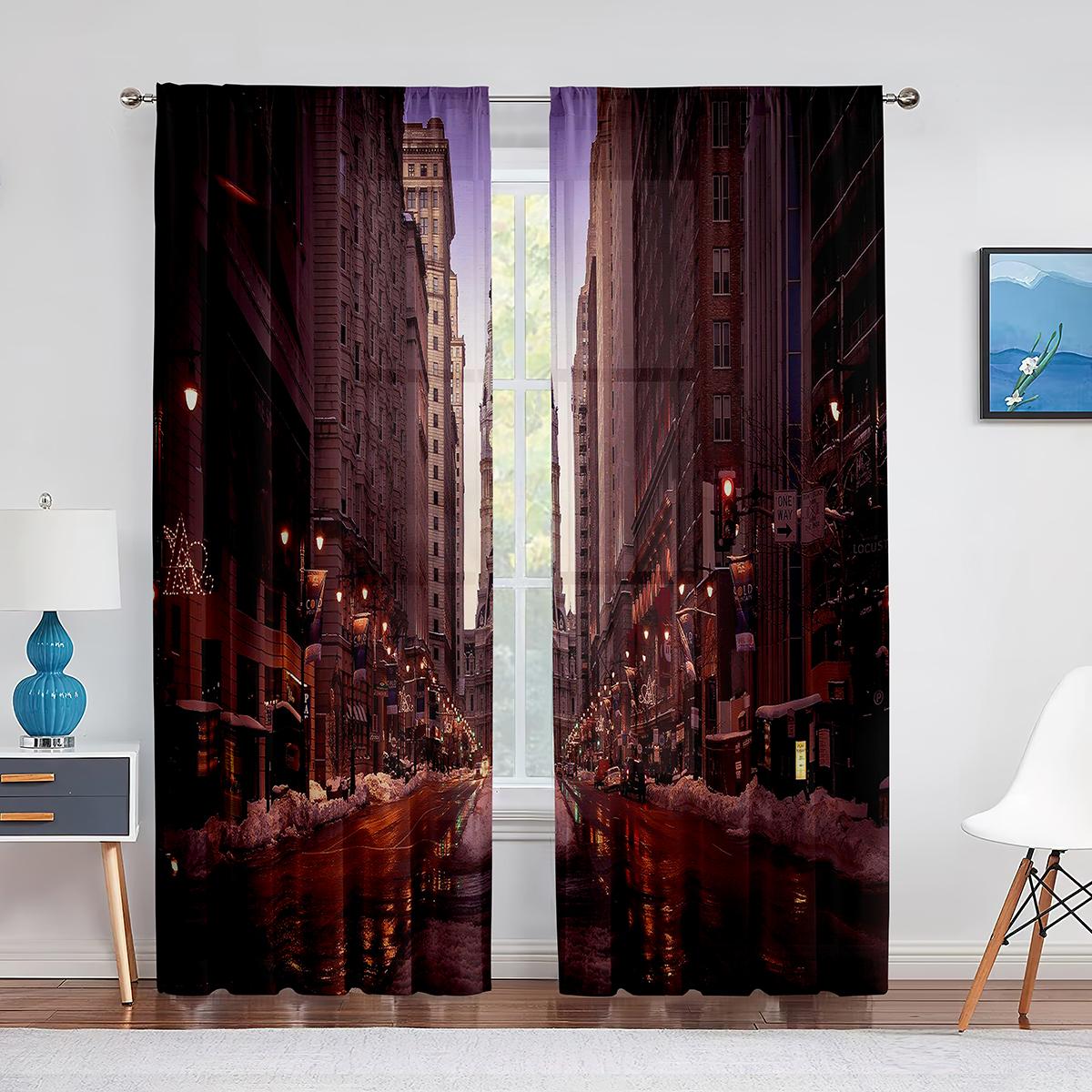 США Пейзаж мост и здания Ночной вид Тюль Шторы для гостиной Спальня Кухня Окно Шифоновые прозрачные шторы Жалюзи 1 PCS W100XH250cm&Grommet Top