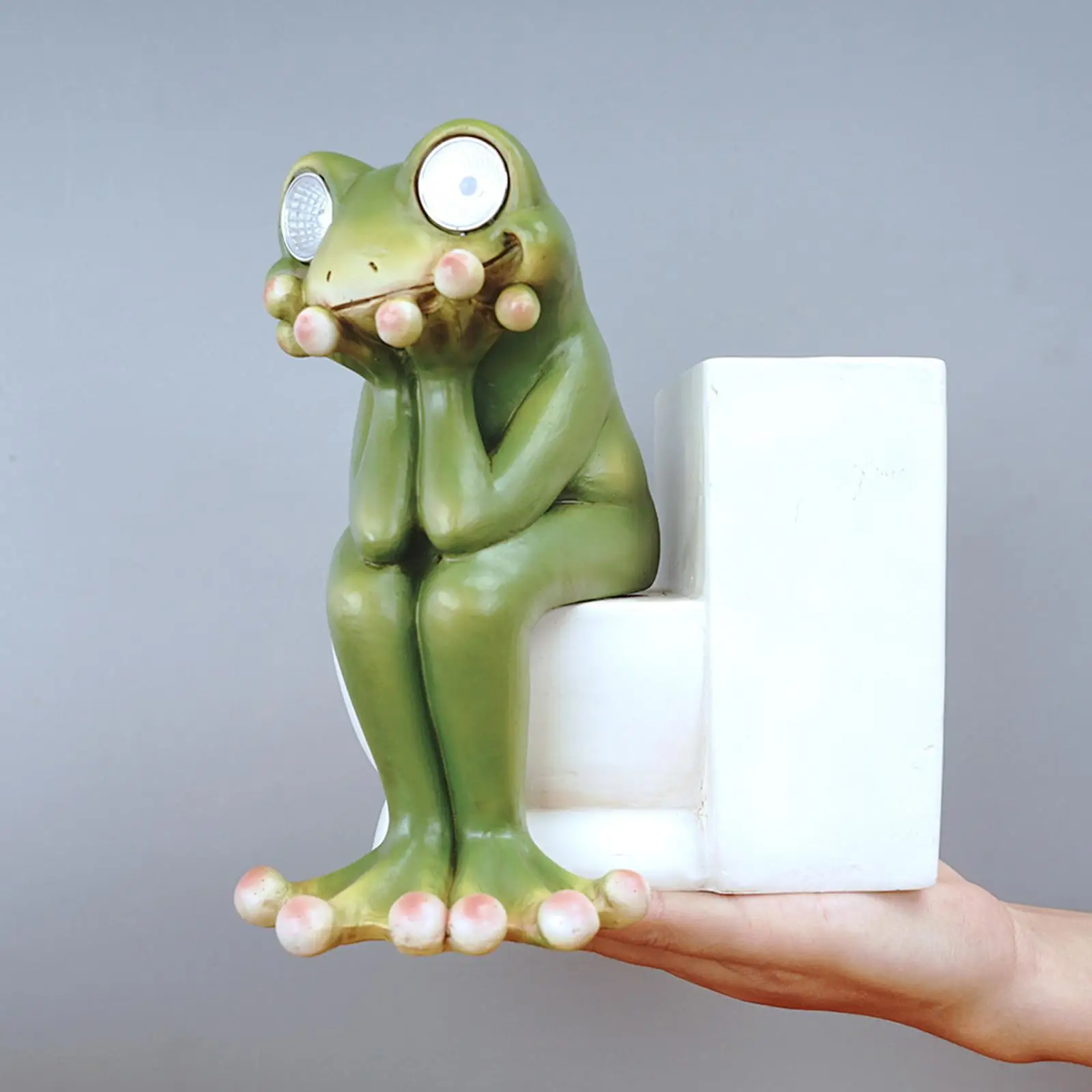 Садовая Статуэтка лягушки на солнечной батарее, микро-Ландшафтная Скульптура, держатель для ручек, Настольная Ваза с цветами, украшение для...