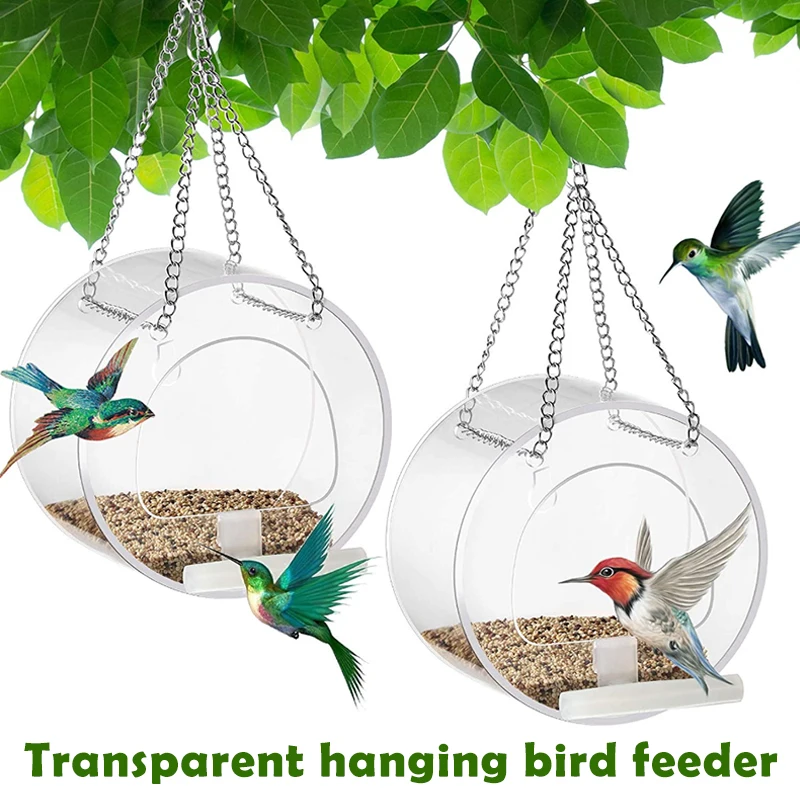 Садовая подвесная акриловая кормушка для птиц, уличная круглая птичья клетка, пищевая коробка против распыления, подвесная кормушка для птиц, товары для птиц